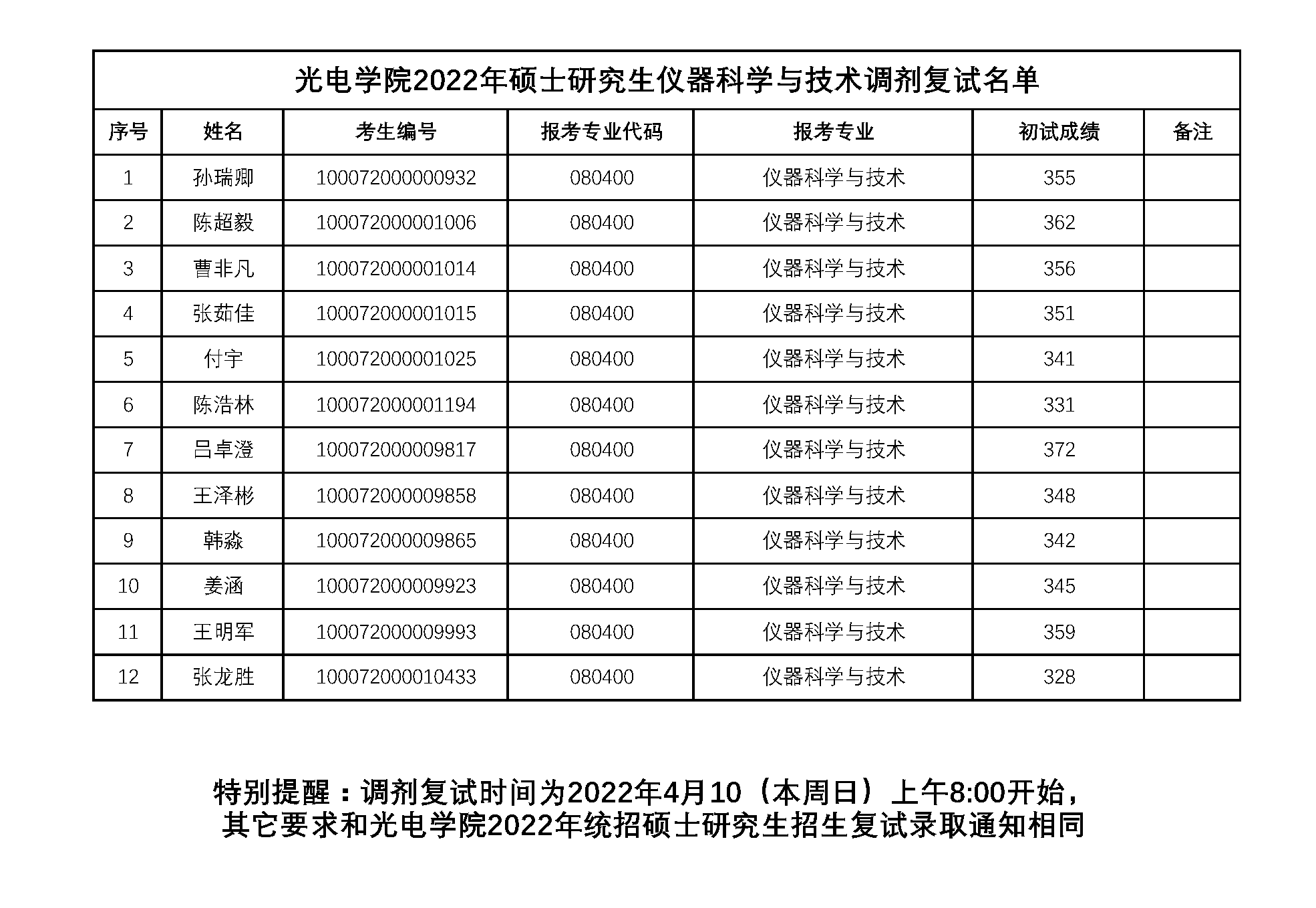 沙巴体育 2022年硕士研究生仪器科学与技术调剂复试名单