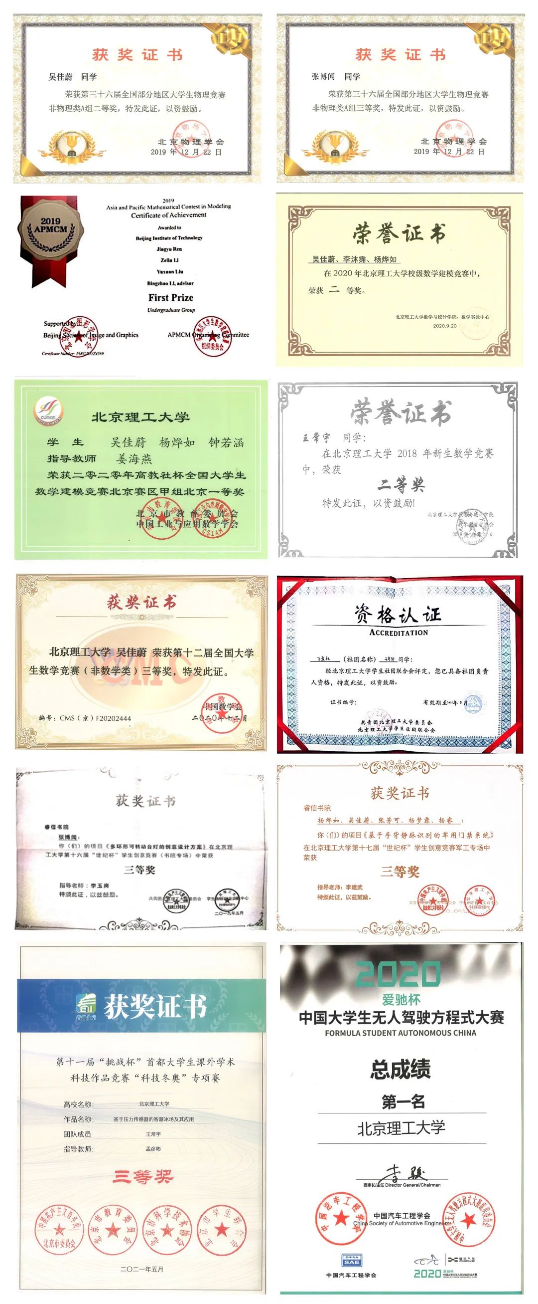 班级同学表现优异:1人获评北京市三好学生;3人次获评校级优秀学生标兵;13人次获评校级优秀学生;5人次获评校级优秀团员;3人次获评校级优秀团干部。